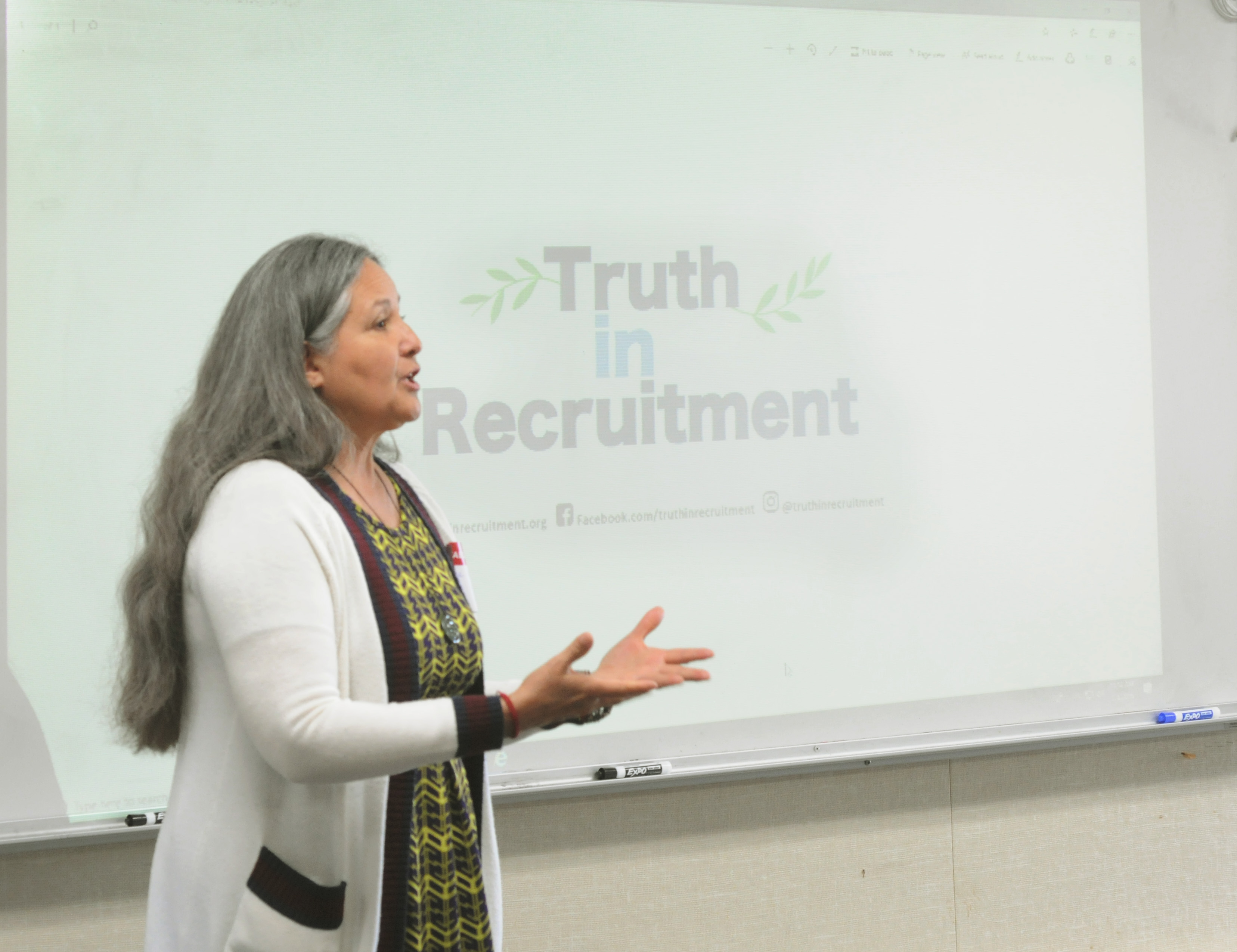 The Conference closed with a quote from Assata Shakur that reads, “It is our duty to fight for our freedom. It is our duty to win. We must love and support one another. We have nothing to lose but our chains.” Dr. Denise Isom lead the group as we repeated the phrase, coming together in solidarity for our various causes. The strength of community building was clear. Truth in Recruitment left the Conference with new allies and knowledge to continue our efforts back home.