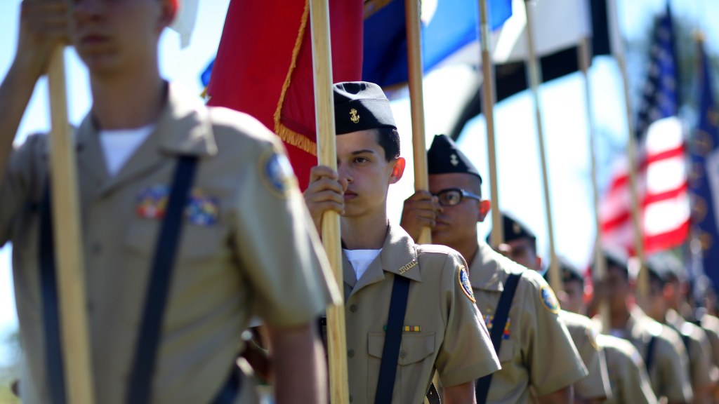 The JROTC is a federally sponsored program that operates in public and private high schools, described by the government as “character development and citizenship programs” where retired servicepeople offer information and skill training to student participants, which can lead to scholarships for its participants. Connell says programs like JROTC and the Future Soldiers program (formerly the Delayed Entry program) make the military attractive to poor students, whose college options may otherwise be limited.